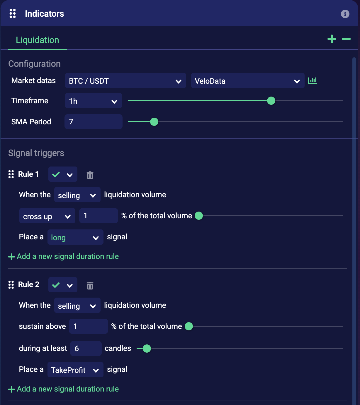 <figure><img src="https://793384675-files.gitbook.io/~/files/v0/b/gitbook-x-prod.appspot.com/o/spaces%2FsQezxfp9oB9jrccv5OA4%2Fuploads%2FsIM1rDIenlxd6ZwaOGkT%2Fimage.png?alt=media&#x26;token=7fe1bdd5-2321-491d-a888-d04aa87ec49a" alt="" width="425"><figcaption><p>Liquidations indicator triggers</p></figcaption></figure>