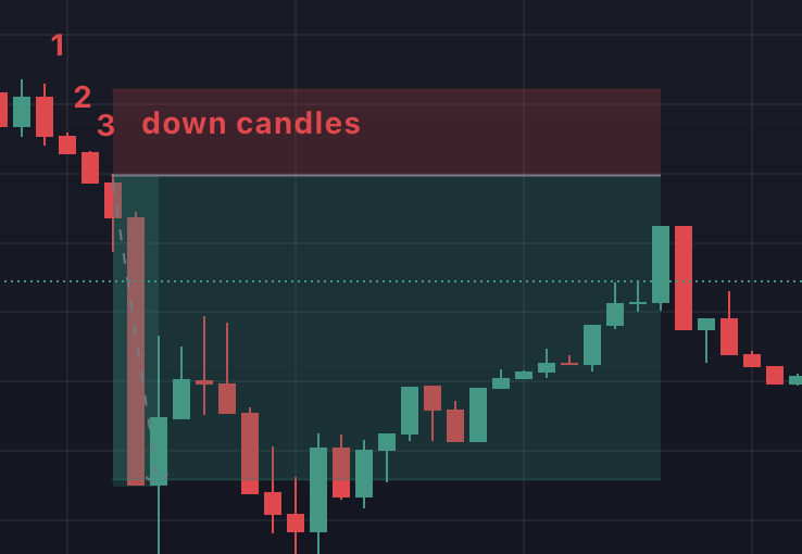 <figure><img src="https://793384675-files.gitbook.io/~/files/v0/b/gitbook-x-prod.appspot.com/o/spaces%2FsQezxfp9oB9jrccv5OA4%2Fuploads%2FqBZt7jYO7tGVLcIwc23S%2Fimage.png?alt=media&#x26;token=907f48c3-df5e-4b71-a57f-2b0e42d9d803" alt="" width="563"><figcaption><p><strong>In this example, we want to short once exactly 3 consecutive candles of 5 minutes are down.</strong></p></figcaption></figure>