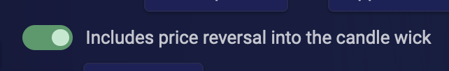 <figure><img src="https://793384675-files.gitbook.io/~/files/v0/b/gitbook-x-prod.appspot.com/o/spaces%2FsQezxfp9oB9jrccv5OA4%2Fuploads%2F7oCXBZ3rVKzAQTFAc6Xu%2Fimage.png?alt=media&#x26;token=be101aeb-f801-4a65-a85a-39ff536e760d" alt="" width="365"><figcaption><p>Deactivated feature Includes price reversal into the candle wick </p></figcaption></figure>